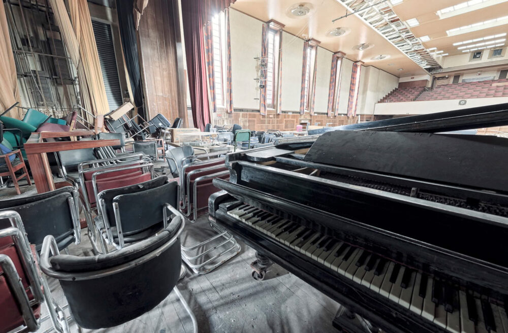 The high resolution tour captures the Town Hall before redevelopment, revealing its council chamber, theatre, dressing rooms, foyer and backstage areas. It records the building’s Art Deco details and atmosphere during its years of disuse.