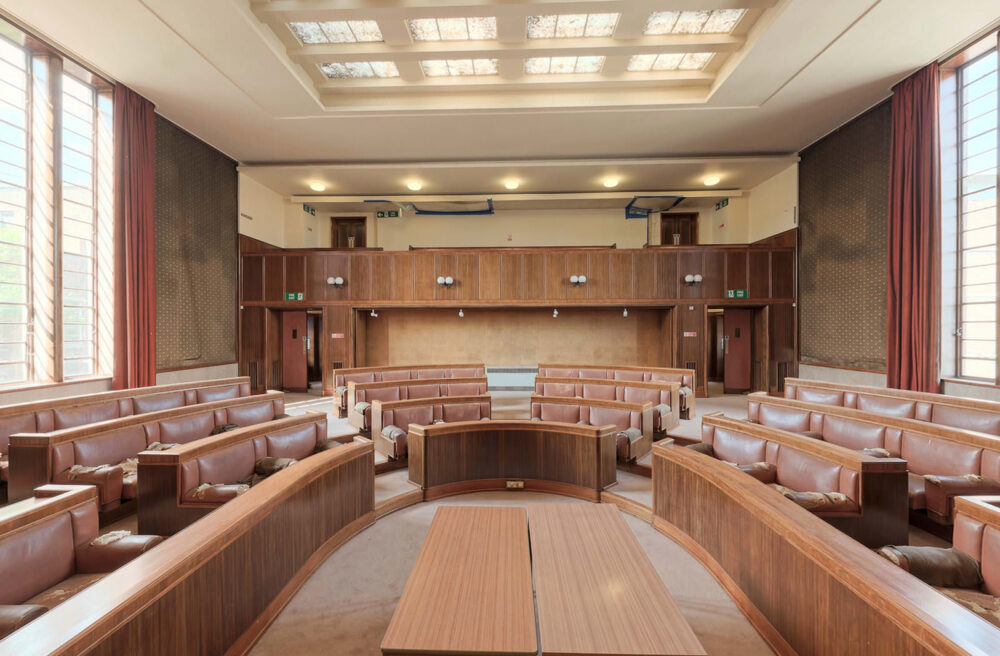 After 1966, when most of the council functions were moved to Wood Green Town Hall, Hornsey Town Hall fell into disrepair. The grand council chamber was sealed off due to concerns about asbestos.